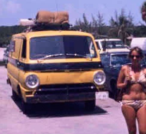 One of my favorite memories is our honeymoon cross country adventure in September 1974. I am an East Coast girl and I wanted to see California and Paul had family there. We converted an old 1964 Dodge panel van into a “hippie style” camper and embarked on our journey. The van was nothing fancy. In its previous life, it had been gutted to haul motorcycles and painted canary yellow with black banding. I think you can get the picture but this was 1974. We equipped it modestly with a platform bed, block ice refrig. and calico curtains. Take a peek at our “hippie” van that sometimes became the interest of law enforcement along the way.